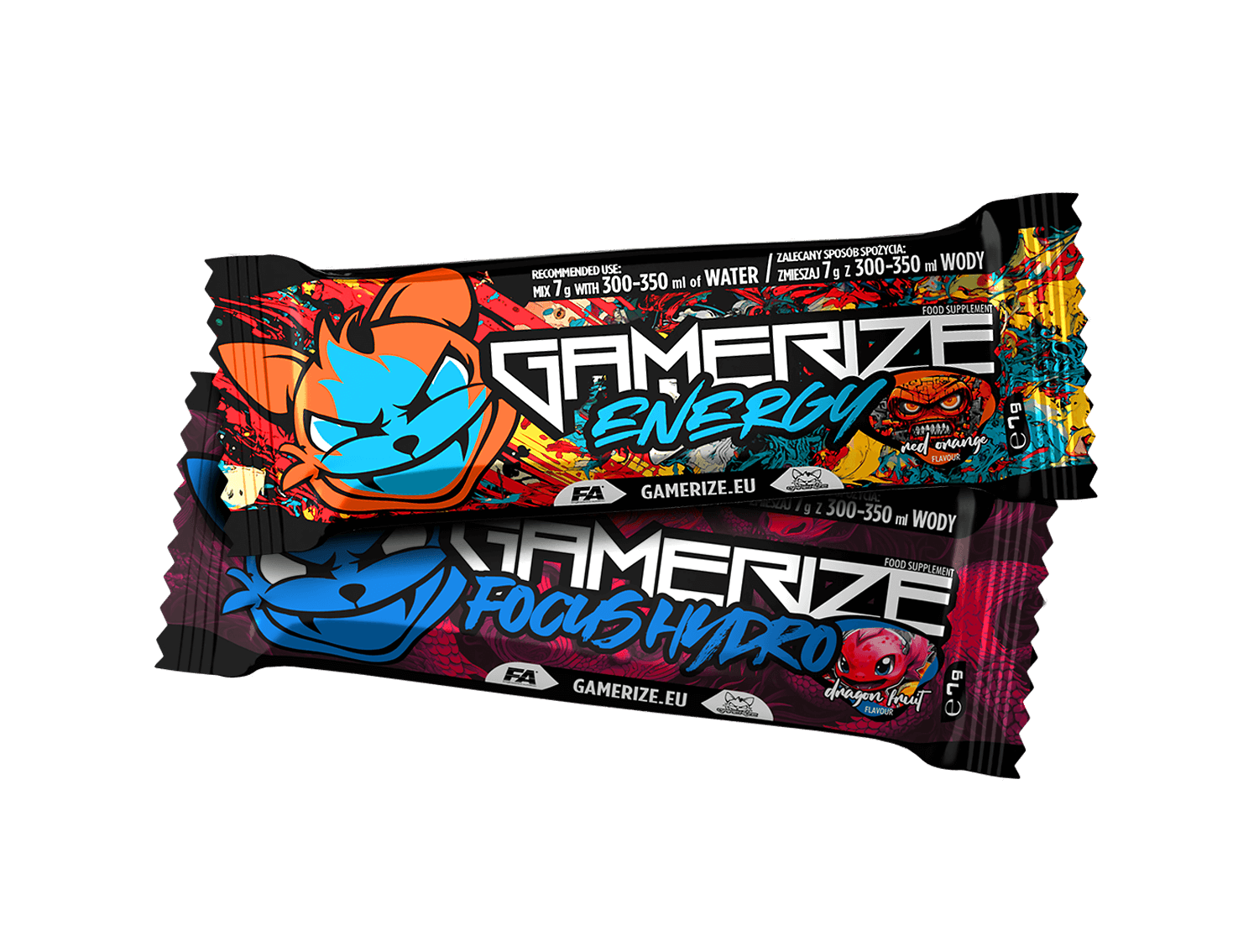 GAMERIZE ENERGY contains as many as 15 active ingredients that will help take yourskills to a higher level. Available in powder form to be dissolved in water in three fruit flavors!
